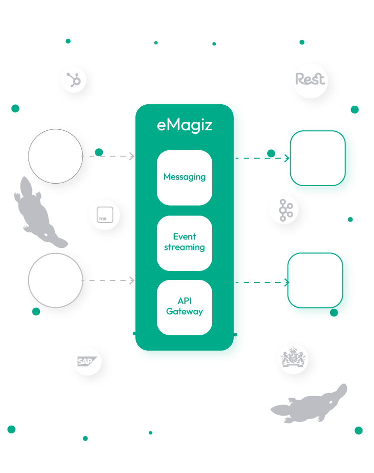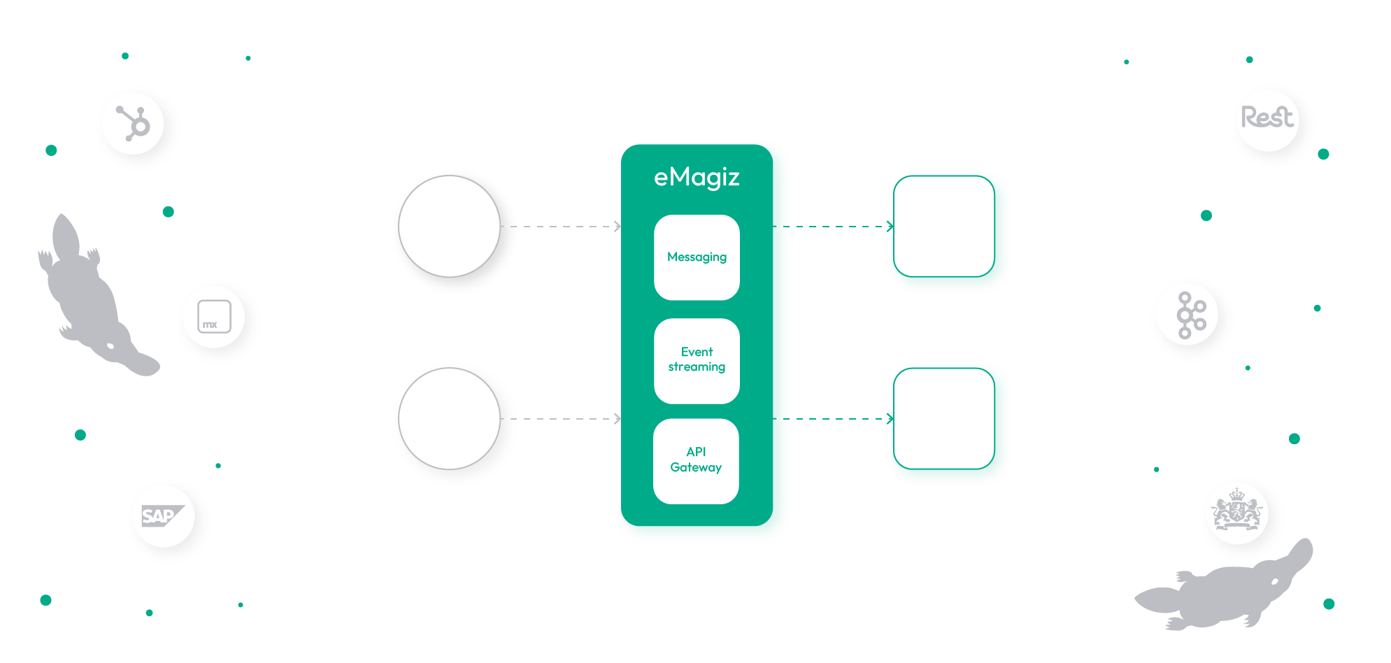 Verschillende soorten integraties vereisen verschillende technologieën voor een succesvolle implementatie. Binnen eMagiz zijn drie technologieën beschikbaar die flexibel zijn toe te passen in een hybride omgeving.